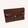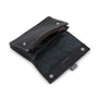 This snap-on companion is made of reclaimed leather. This model stands out for its interior layout that unfolds like an accordion: a zippered pocket for coins, two pockets for cards, and two pockets for your papers. Made in our workshop in the Tarn region.