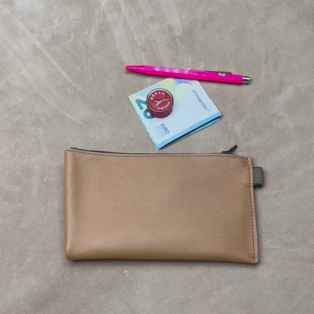 Made from supple and durable recycled leather, it is suitable for everyday use and fits easily into a handbag or travel bag.