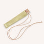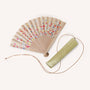 This fan is made of beech wood and cotton canvas, offering a comfortable grip. Its colorful design adds a touch of whimsy to any outfit. Lightweight and foldable, it slips easily into its upcycled leather case, designed to protect it and make it easy to carry every day.