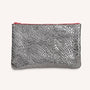 This flat, zippered pencil case made from revitalized leather is the perfect size for storing papers, makeup, and pencils. Made in our Tarn workshop.