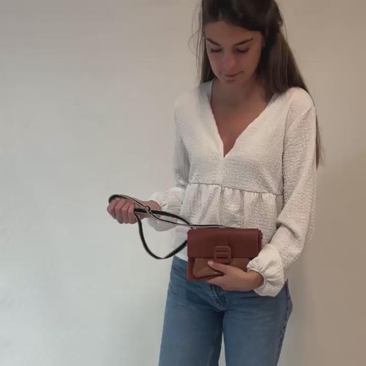La Banane Madame est un petit sac bandoulière en cuir ressourcé doté d’une fermeture à boucle aimantée. Sa bandoulière ajustable permet un porté crossboddy ou à la taille, selon vos envies. Assez spacieuse avec ses 2 poches et 1 compartiment CB pour transporter vos essentiels – téléphone, cartes, clés – elle vous accompagne partout, sans jamais encombrer.