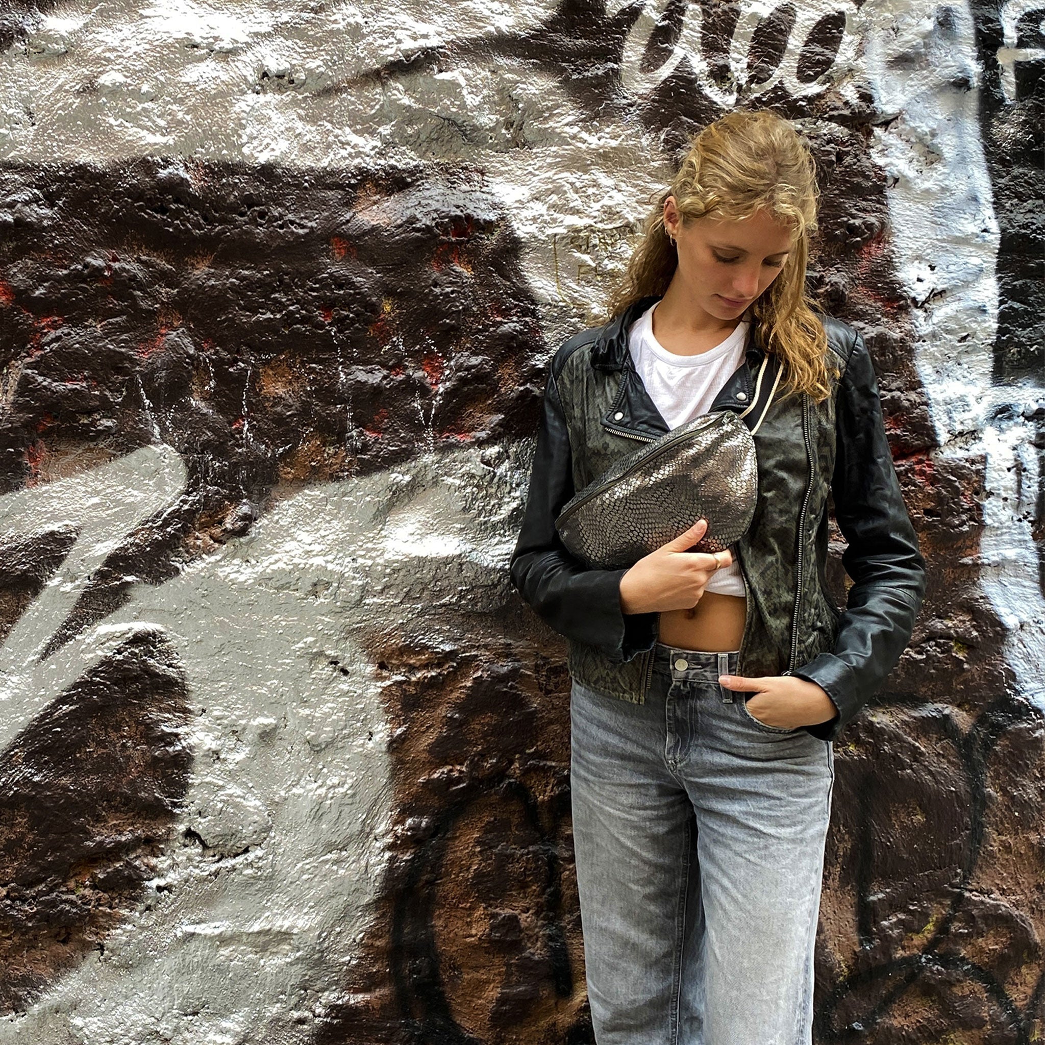 Cette banane grand format est en cuir ressourcé. Sa sangle est adaptable à toutes les morphologies grâce à son anneau de serrage. Pièce fabriquée dans notre atelier du Tarn.