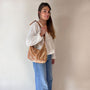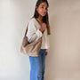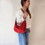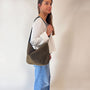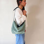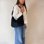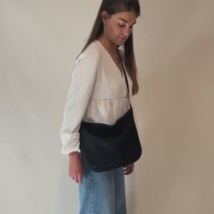 La Besace Plume L séduit par son format généreux et sa coupe souple et légère. Équipée d’une bandoulière en sangle coton réglable par un nœud, elle se porte aisément à l’épaule ou en travers du corps. Sa grande capacité permet de tout emporter, du portefeuille, à l'ordinateur compact, sans alourdir votre allure.