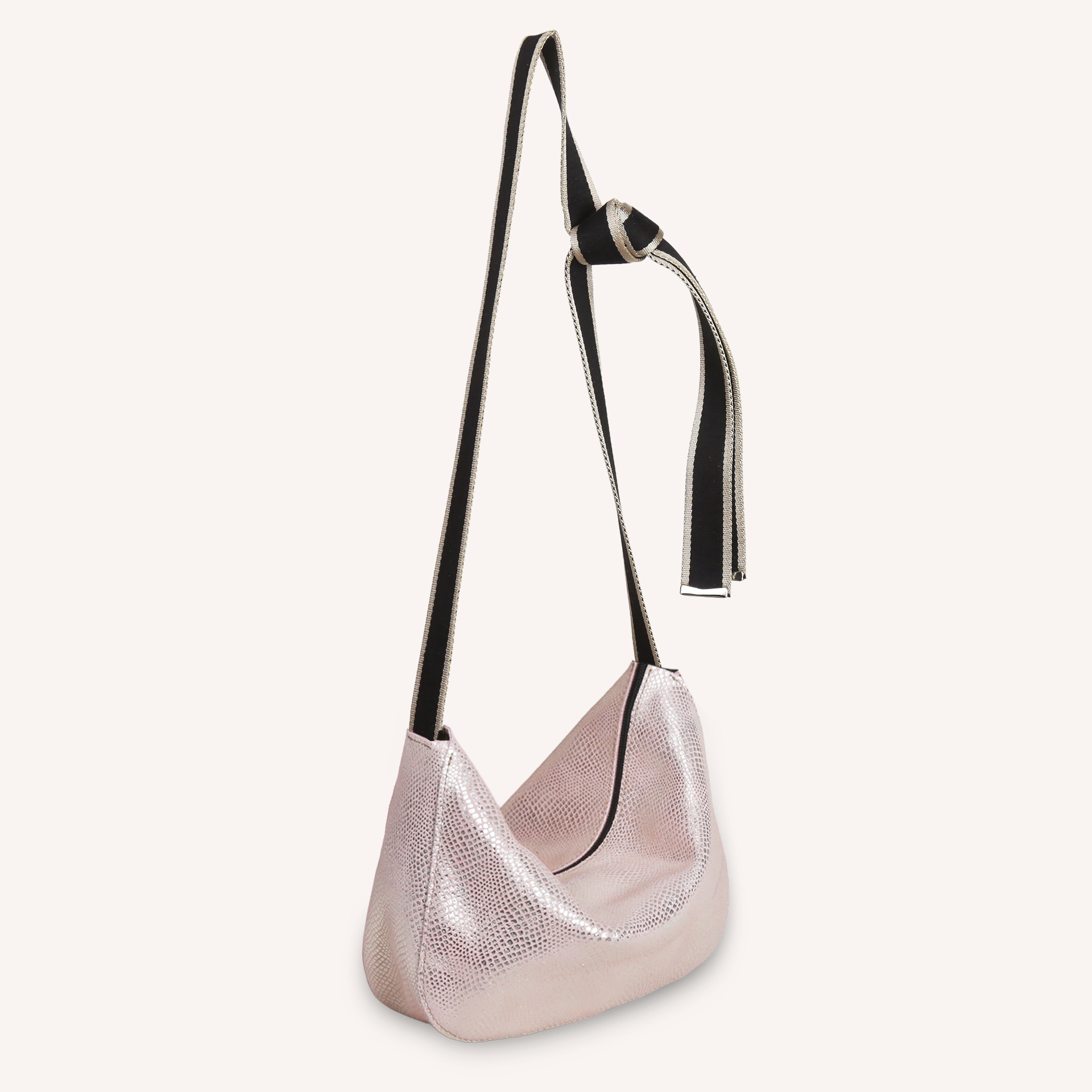 La Besace Plume M se distingue par son format pratique et son design épuré. Dotée d’une bandoulière en sangle, réglable par un noeud, elle se porte confortablement à l’épaule ou en travers du corps.