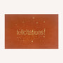 Cette carte postale en cuir ressourcé est embossée à chaud avec un film métallique. Elle porte des messages variés à envoyer selon les moments de la vie. Un papier recyclé est collé au dos de la carte et vous permet d'écrire. Elle pèse moins de 20 grammes. Ainsi un timbre au tarif ordinaire suffit !