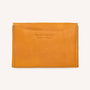 La Pochette Enveloppe est une trousse plate en forme d'enveloppe fermée par un bouton pression rouge. Conçue en cuir ressourcé, elle accueille facilement papiers, cartes, petits documents ou accessoires plats, tout en conservant un format fin et compact.